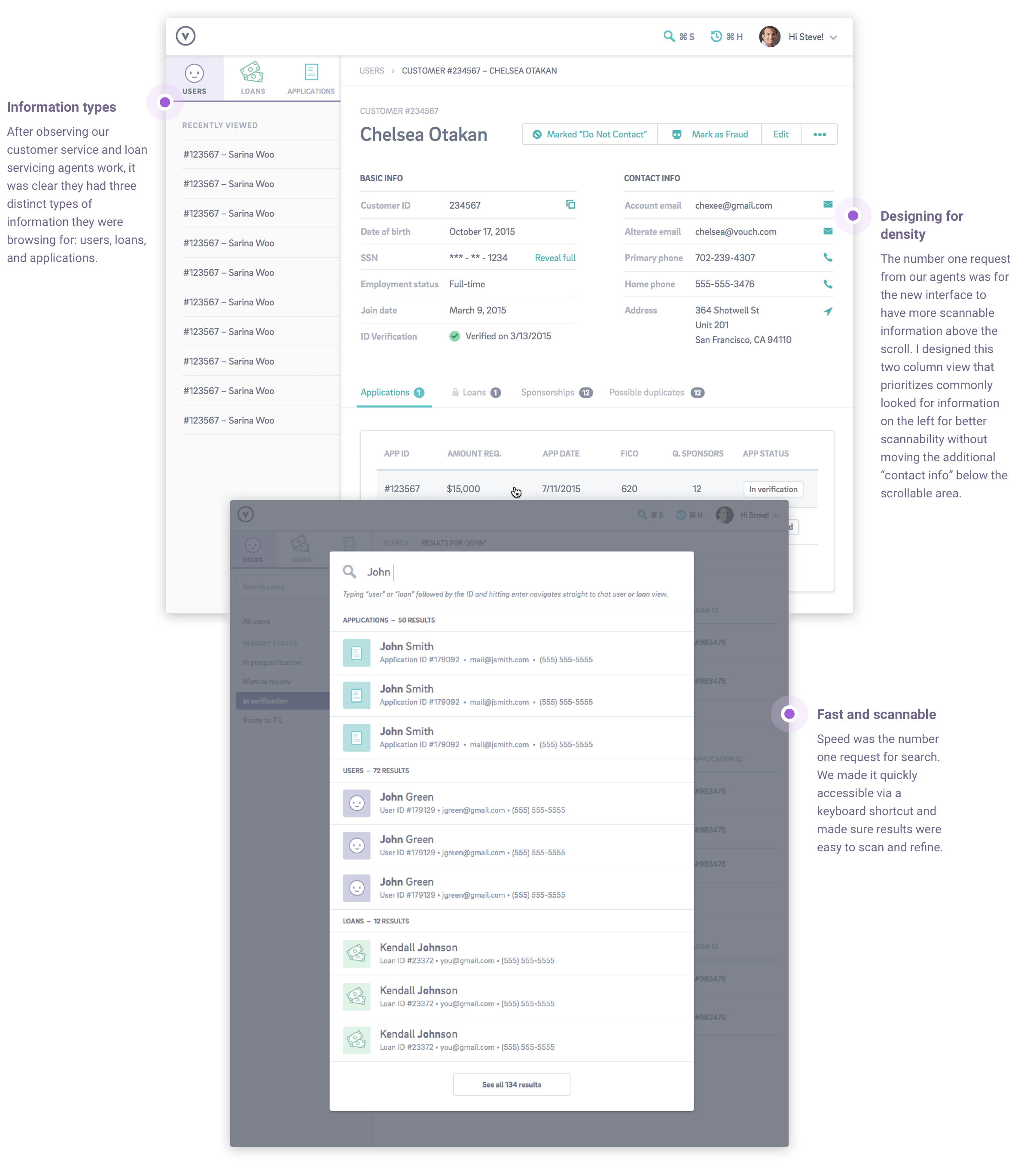 Our finance, customer service, and verification teams are the backbone of our business. They provide valuable insight to our customer's everyday lives. The first versions of the tools we built for them were ad-hoc and thrown together without much thought to design or user experience. I wanted bring a new standard to internal tools — an area often neglected by design.